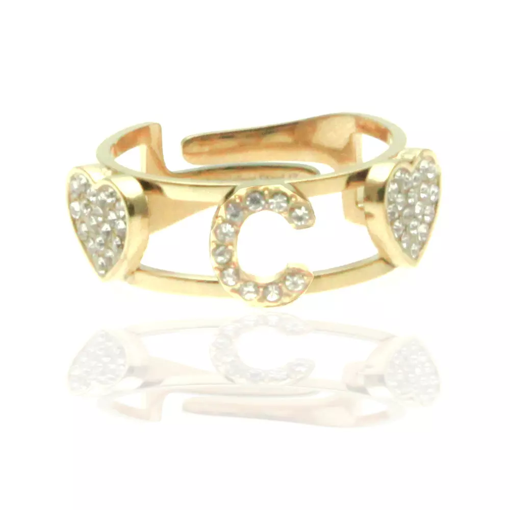 Anello con lettera c in acciaio dorato e strass con cuoricini misura unica aperto all0090
