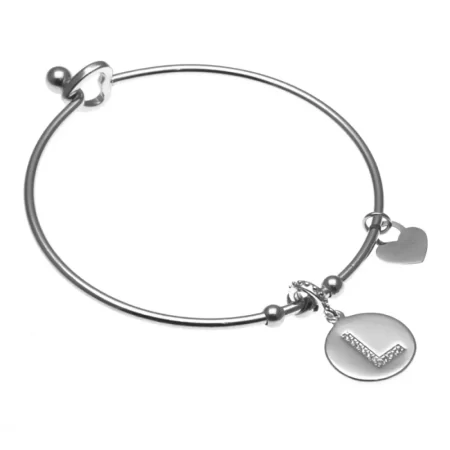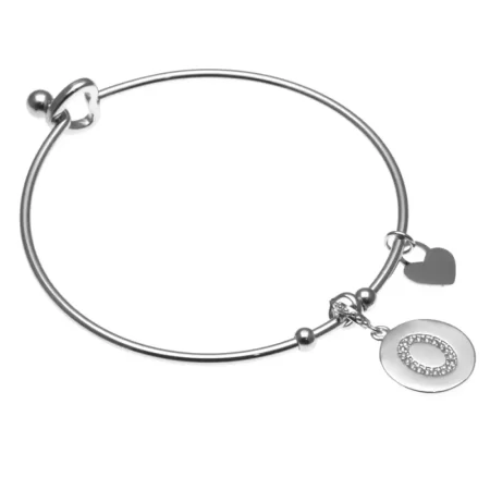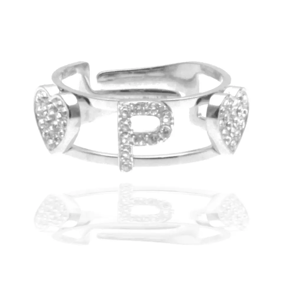 Anello con inziale p in acciaio e strass con cuoricini misura unica aperto all0083