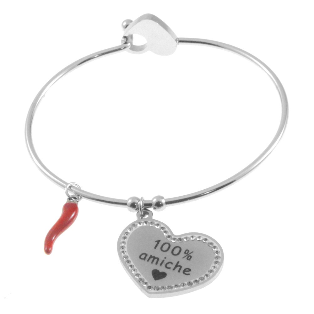 bracciale amicizia con cuore corno rosso e frase rigido in acciaio personalizzabile con incisione sul retro diametro cm 6 bcc2816