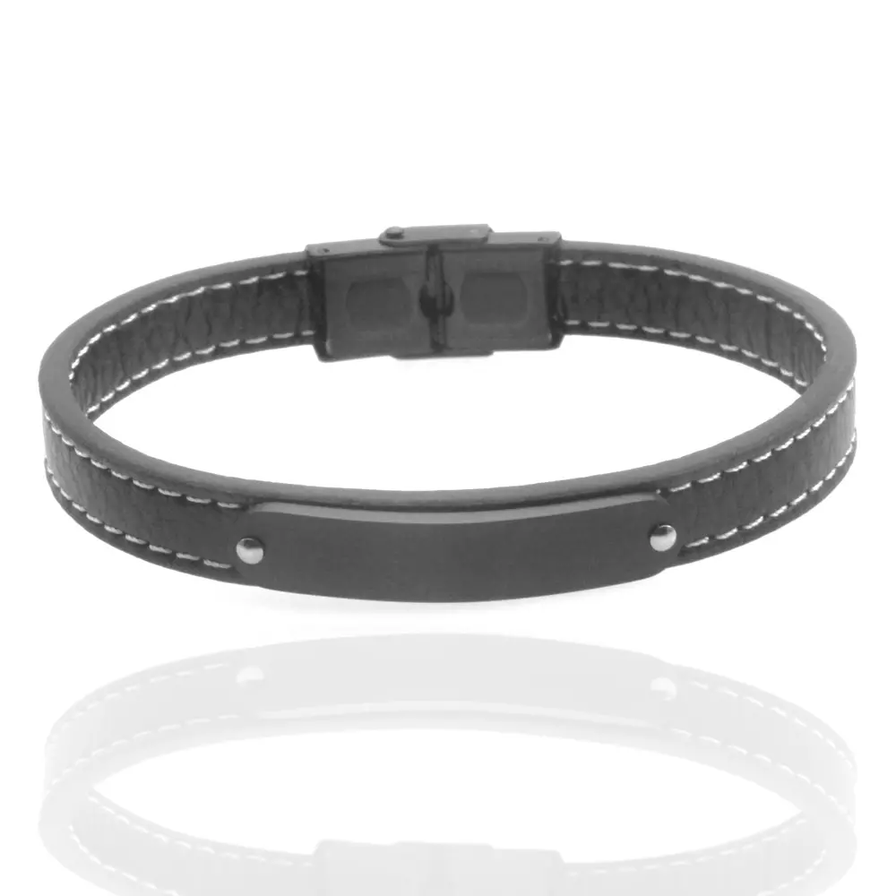 bracciale pelle uomo piastra acciaio personalizzabile con incisione sul fronte cm 21 mm 9 bcc2933