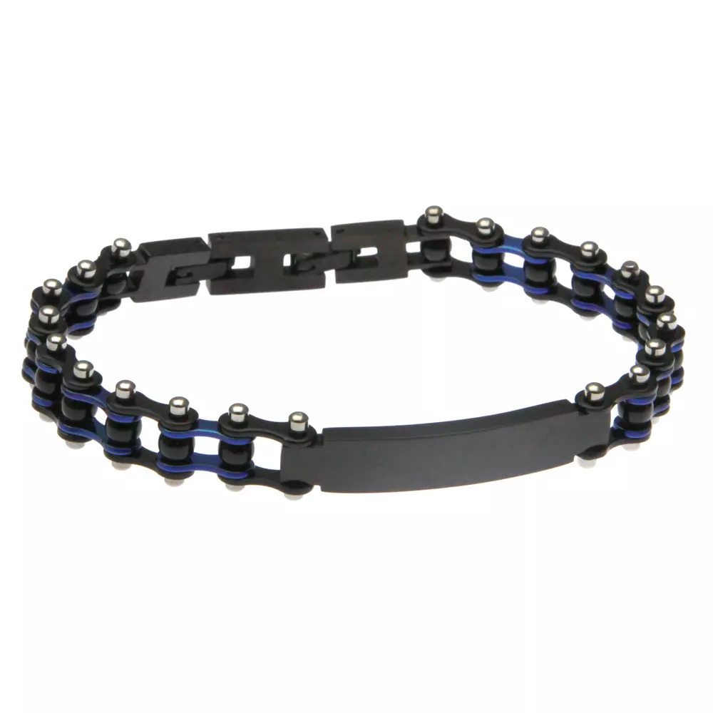 Bracciale uomo catena moto piastra acciaio colore inter possibilità di personalizzazione con incisione sul fronte e sul retro lungo cm 21 largo mm 10