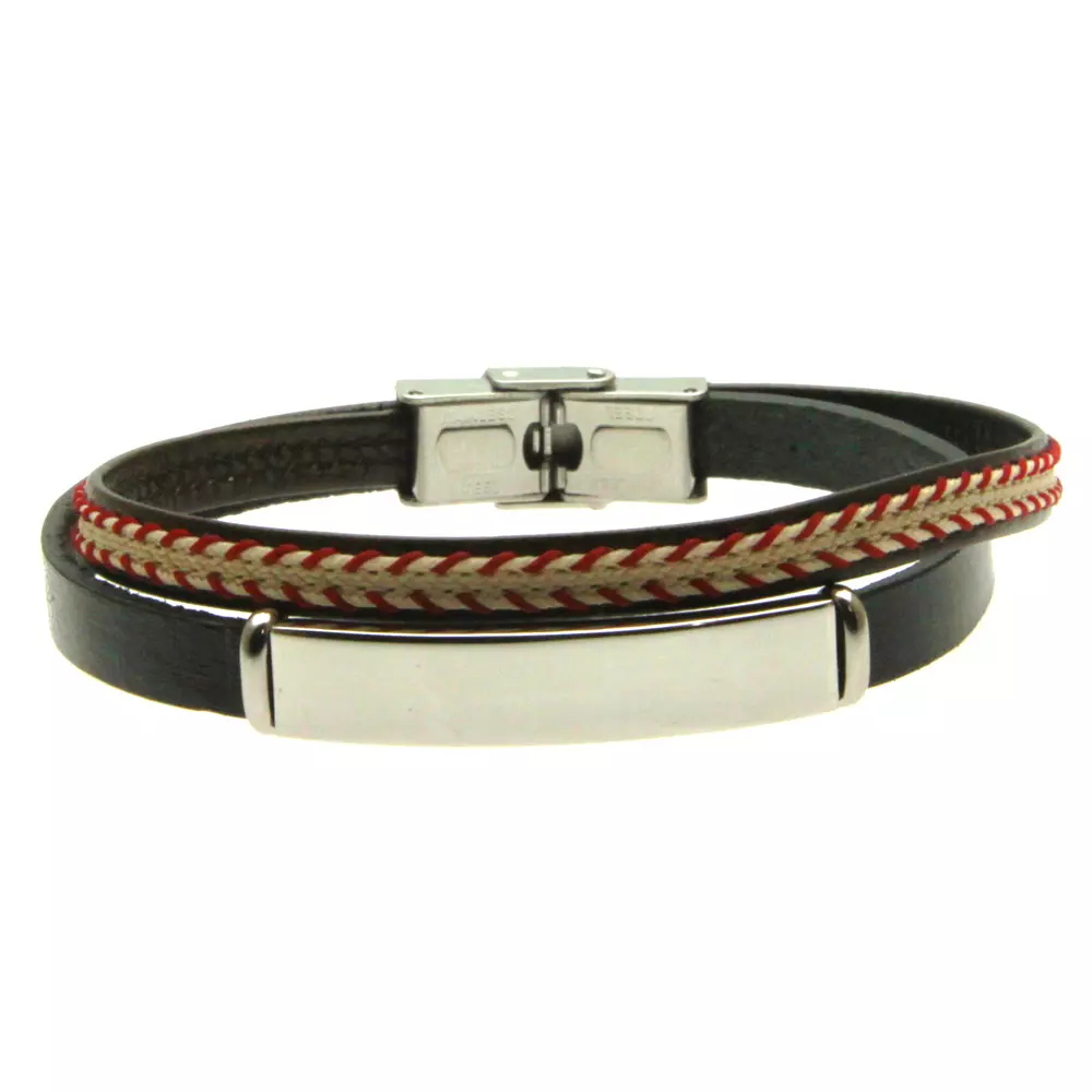 bracciale pelle uomo piastra acciaio personalizzabile con incisione sul fronte cm 21 mm 12 bcc2906