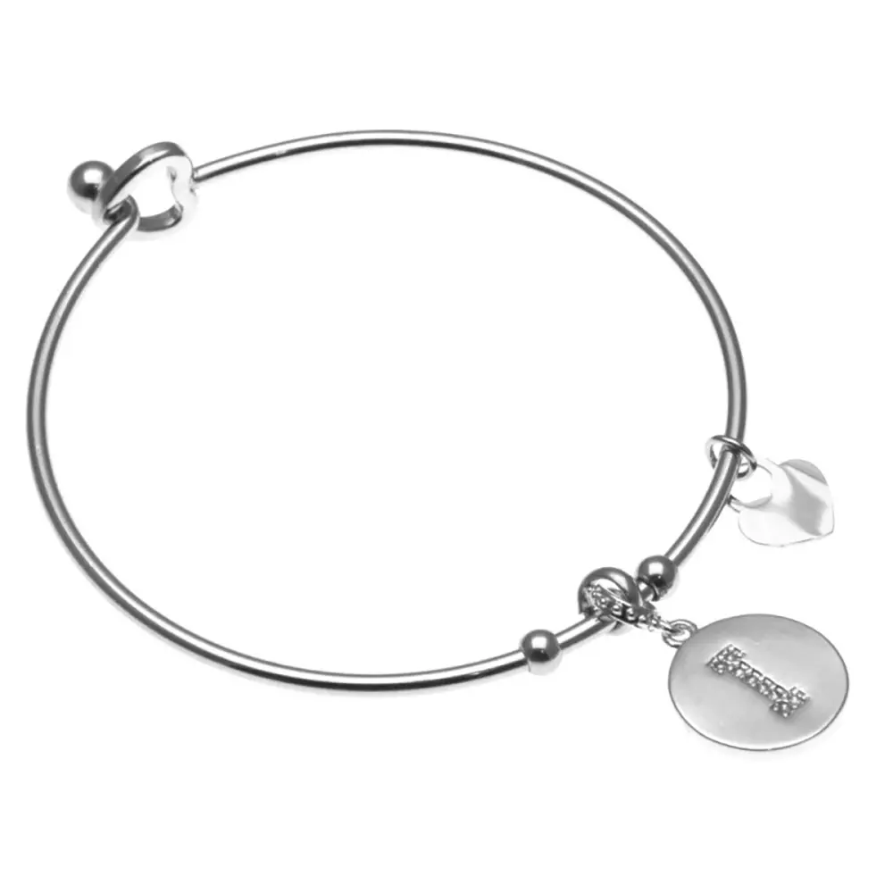 bracciale con iniziale i rigido in acciaio e strass diametro cm 6 pendente mm 15 bria0008
