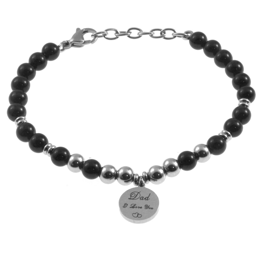bracciale papà con frase acciaio e pietre monetina mm 10 personalizzabile sul retro cm 21 mm 5 bcc2888