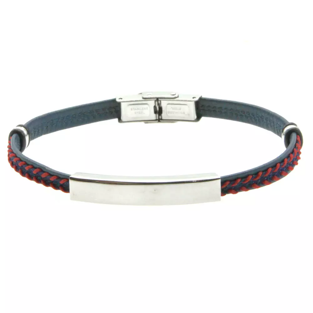 Bracciale uomo pelle colorata piastra in acciaio possibilità di personalizzazione con incisione sul fronte lungo cm 21 largo mm 7 bcc2708