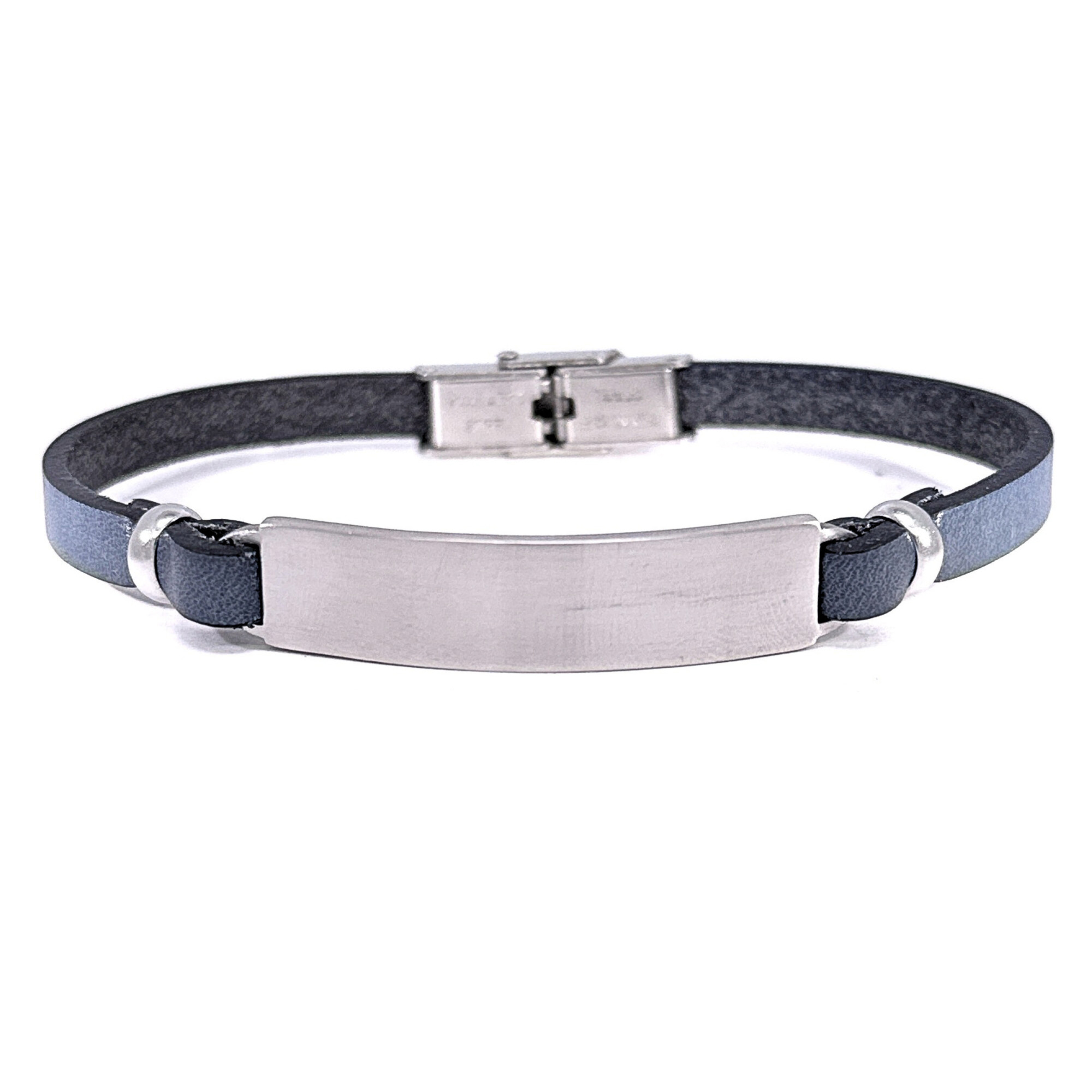 Bracciale uomo pelle pitonata nera piastra acciaio possibilità di essere personalizzato con incisione sul fronte e sul retro lungo cm 21 largo mm 10 bcc2632
