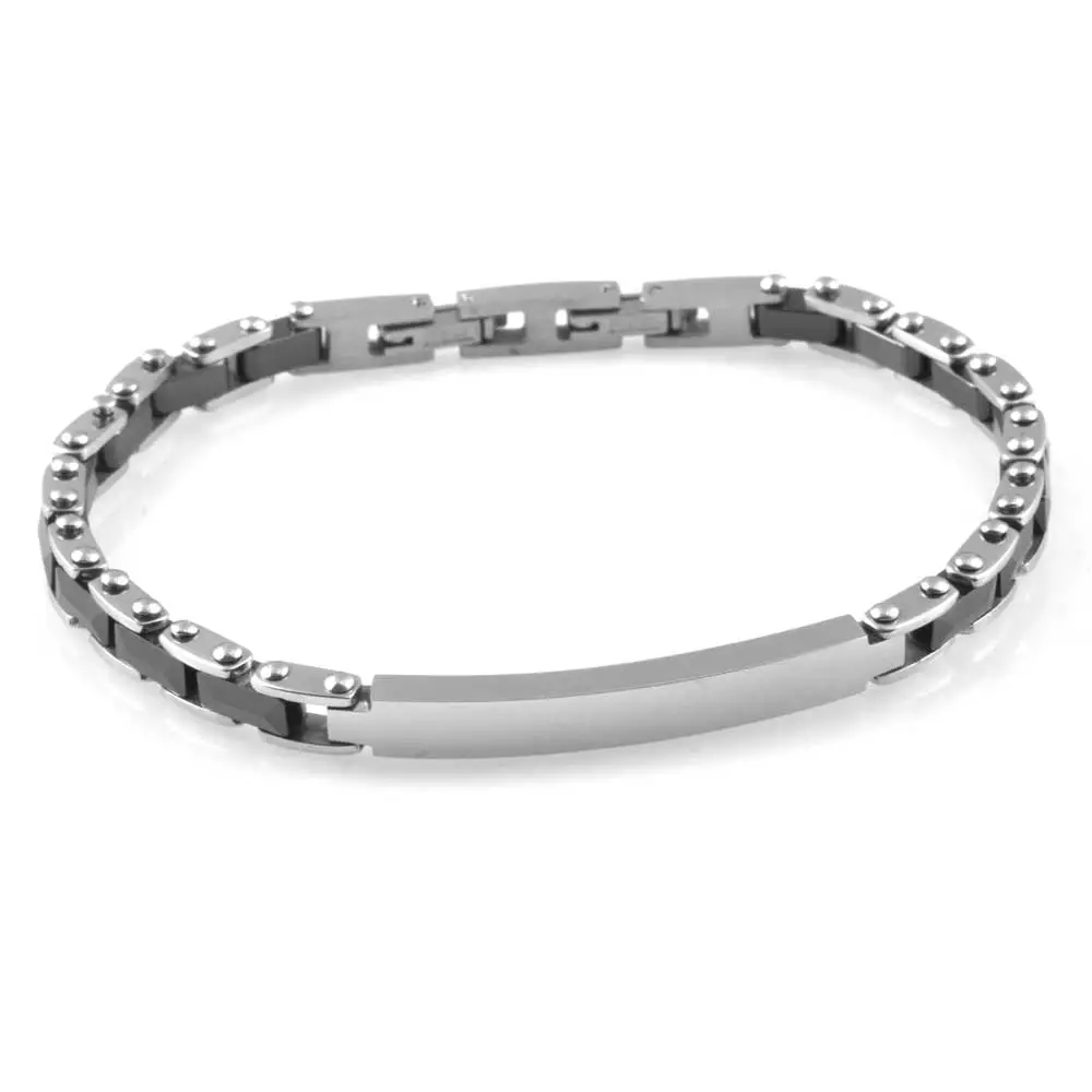 Bracciale uomo piastra in acciaio cinturino in ceramica possibilità di personalizzazione con incisione sul fronte e sul retro lungo cm 21 largo mm 6
