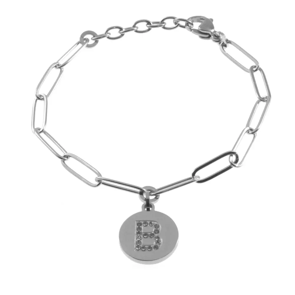bracciale lettera iniziale b in acciaio e strass cm 19 mm 10 bcc2841