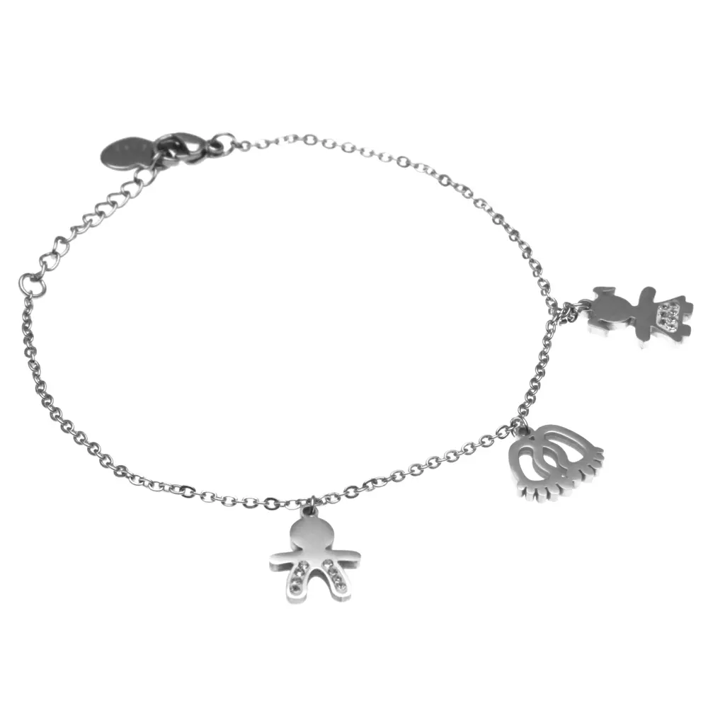bracciale nascita con bimbo bimba e piedini in acciaio e strass lungo cm 19 bcc1569