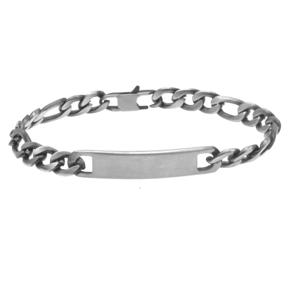 Bracciale uomo grumetta acciaio invecchiato brunito con piastra possibilità di personalizzazione con incisione sul fronte e sul retro lungo cm 21 largo mm 8
