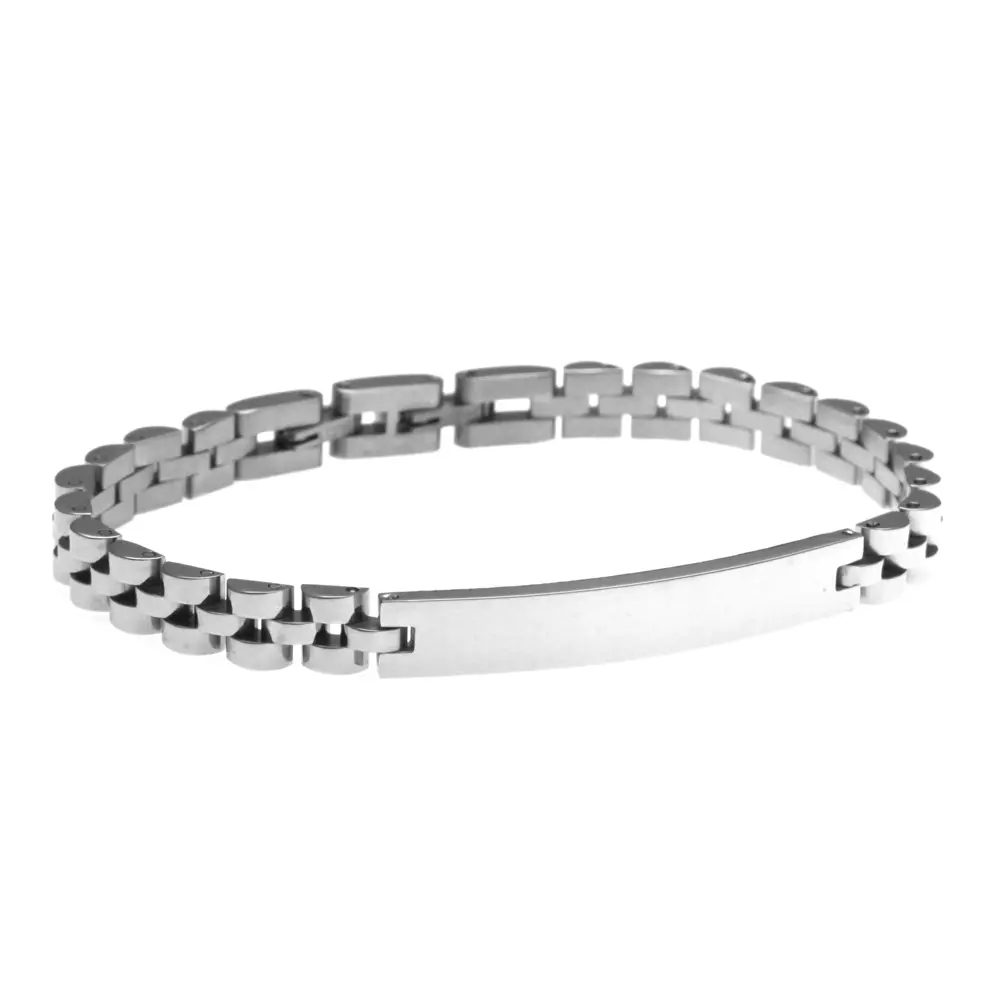 bracciale uomo con piastra in acciaio possibilità di personalizzazione con incisione sul fronte e sul retro cm 21 mm 7 facilmente accorciabile bcc0416