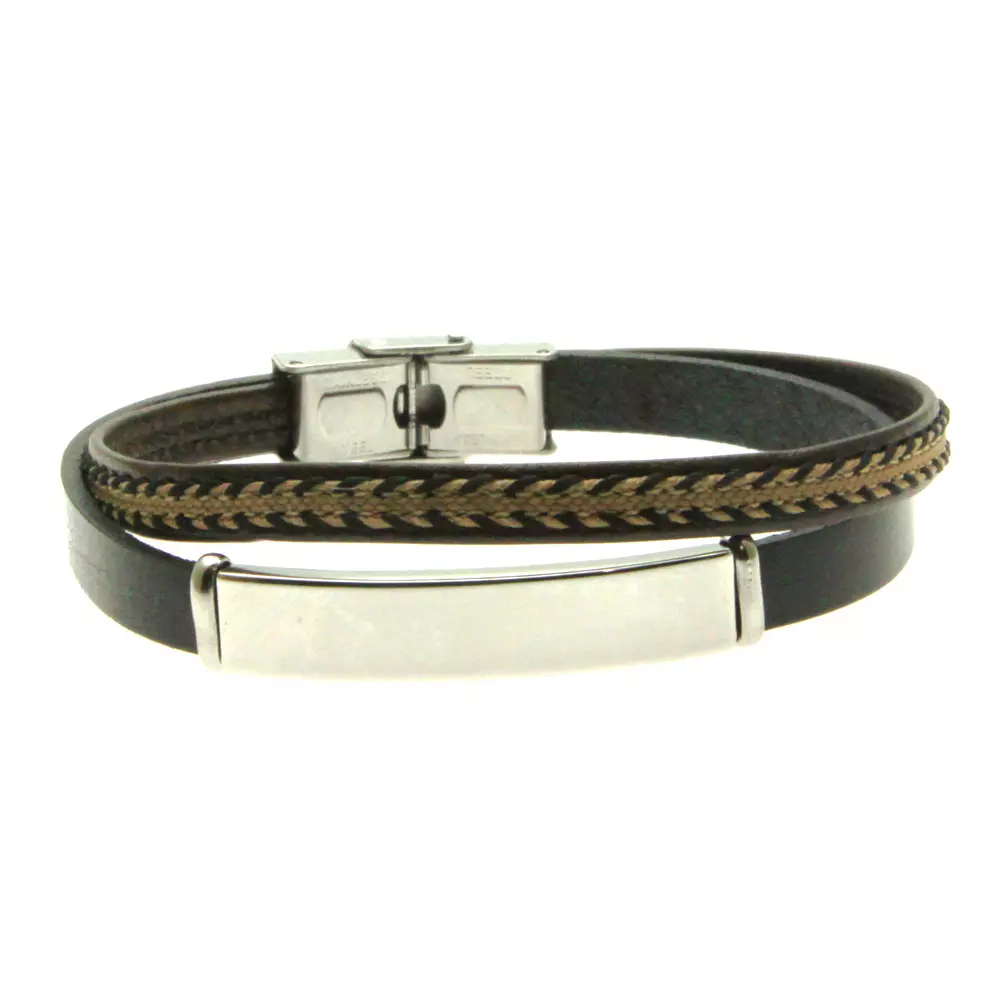 bracciale pelle uomo piastra acciaio personalizzabile con incisione sul fronte cm 21 mm 12 bcc2905