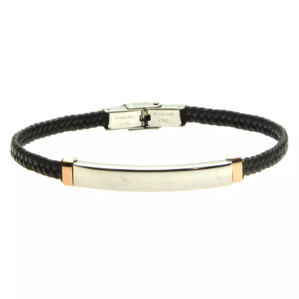 bracciale pelle uomo piastra acciaio personalizzabile con incisione sul fronte cm 21 mm 6 bcc2913