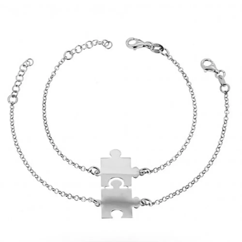 Bracciali puzzle coppia e fidanzati in acciaio possibilità di personalizzazione sul fronte e sul retro misura lui cm 21 lei cm 19 pendente intero mm 24 mm 12 bcc2517