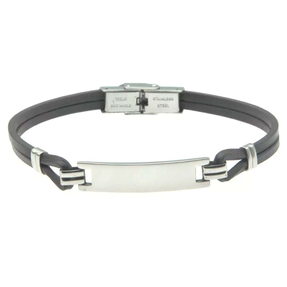 Bracciale uomo pelle marrone piastra in acciaio possibilità di essere personalizzato con incisione sul fronte e sul retro lungo cm 21 largo mm 8 bcc2638