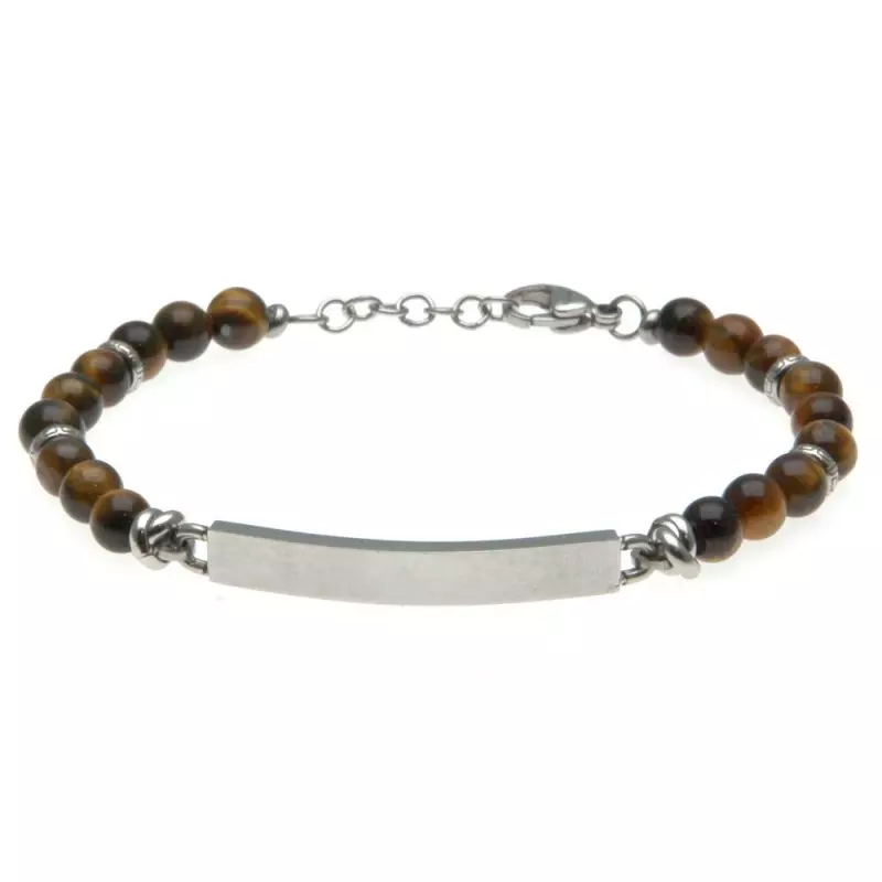 Bracciale uomo pietre piastra acciaio possibilità di personalizzazione con incisione sul fronte e sul retro lungo cm 21 largo mm 5