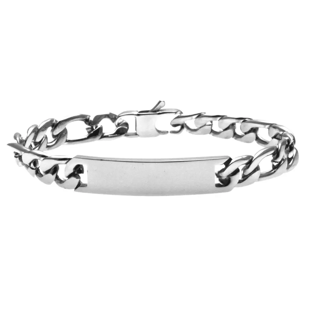 bracciale figaro uomo con piastra in acciaio personalizzabile con incisione sul fronte e sul retro cm 21 mm 10 bcc2902
