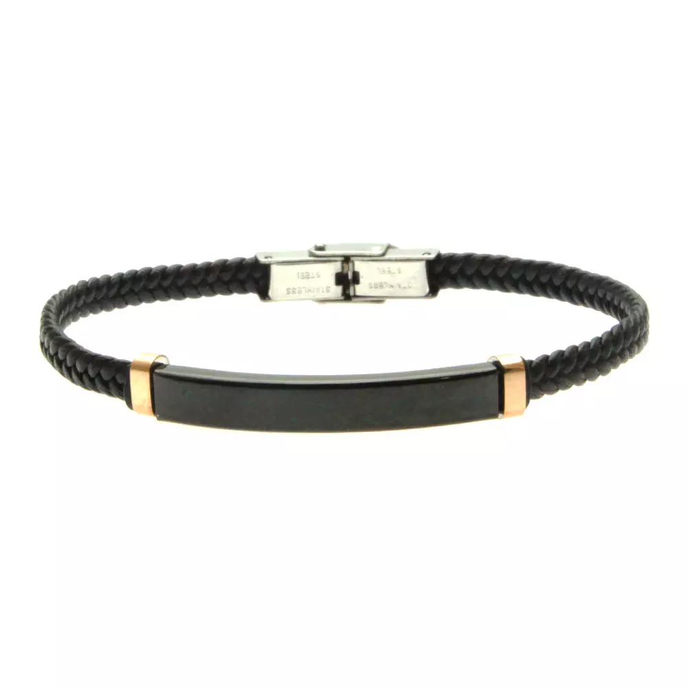 bracciale pelle uomo piastra acciaio personalizzabile con incisione sul fronte cm 21 mm 6 bcc2914