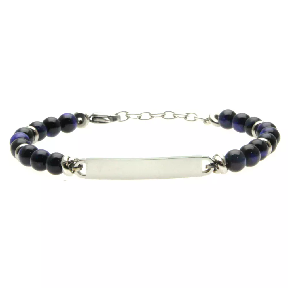 Bracciale uomo pietre piastra acciaio possibilità di personalizzazione con incisione sul fronte e sul retro lungo cm 21 largo mm 5 bcc2878
