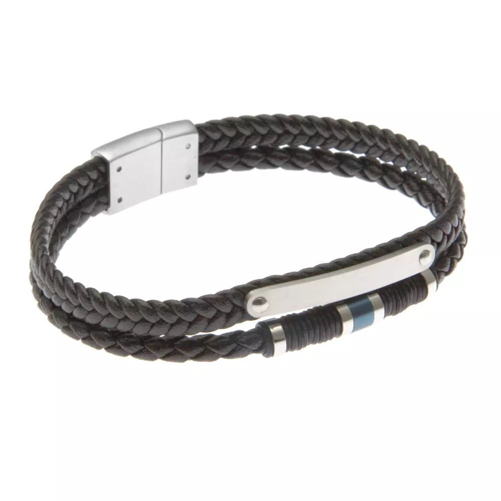 bracciale uomo pelle con piastra acciaio bcc1450