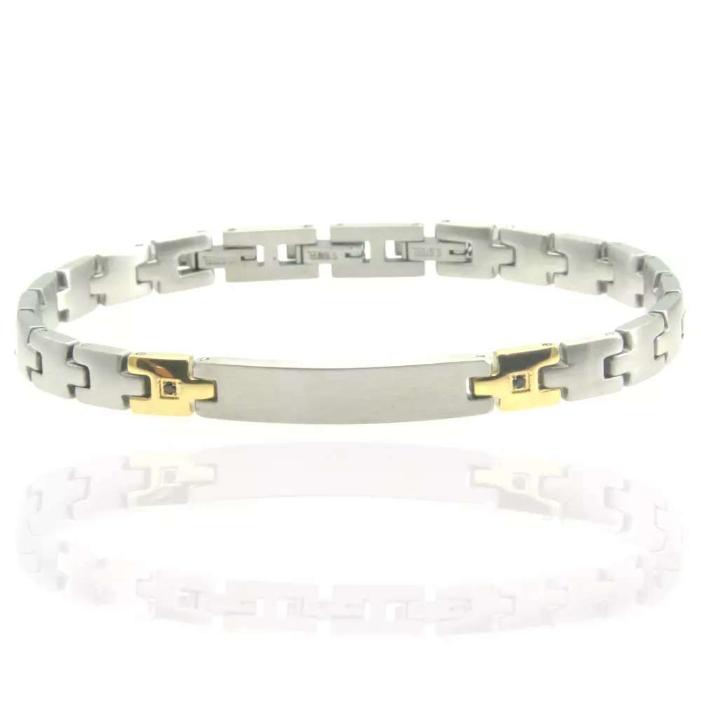bracciale uomo con piastra in acciaio e strass personalizzabile con incisione sul fronte e sul retro cm 21 mm 7 bcc2927