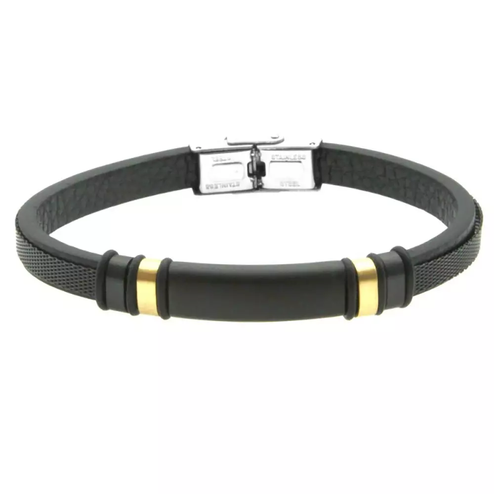bracciale uomo pelle acciaio con piastra bcc2924