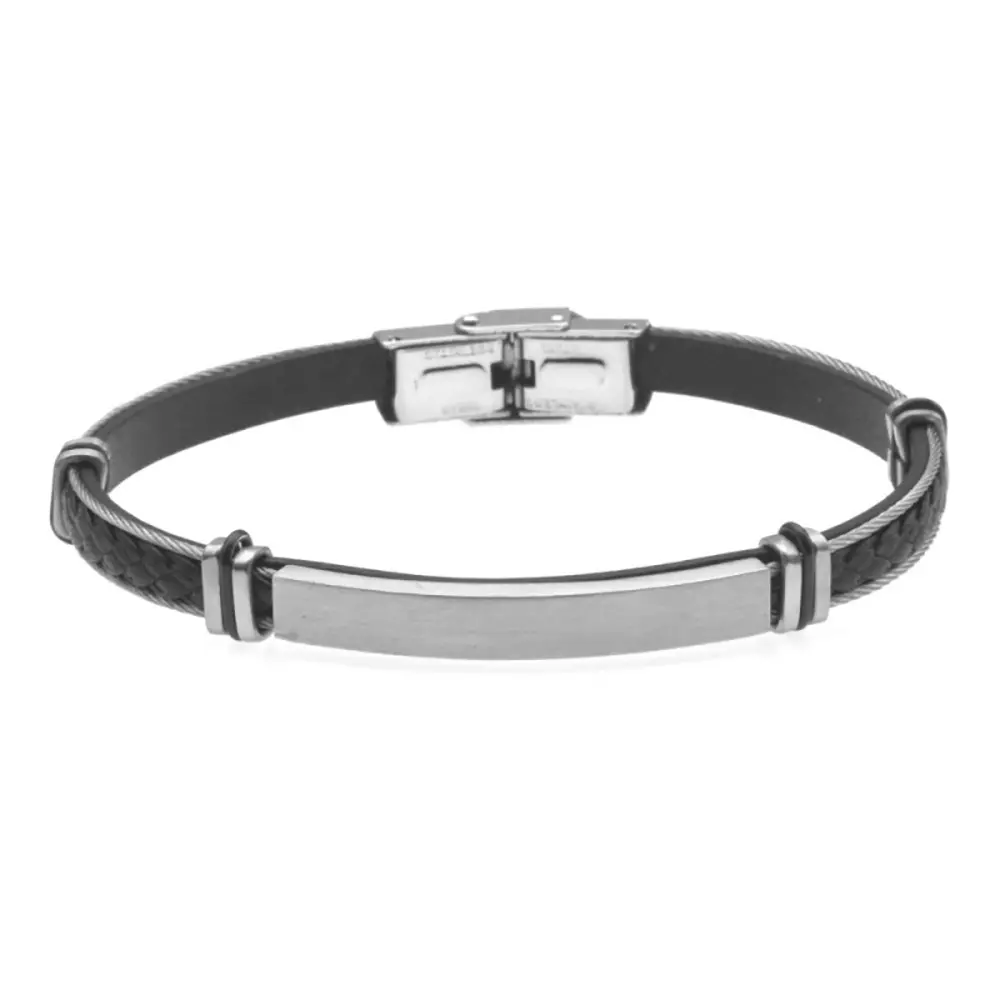 bracciale uomo pelle cavetto piastra acciaio bcc2330