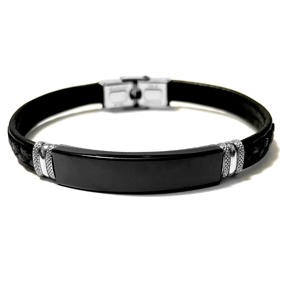 bracciale uomo pelle nera piastra per incisione cm 21 mm 10 bcc2979