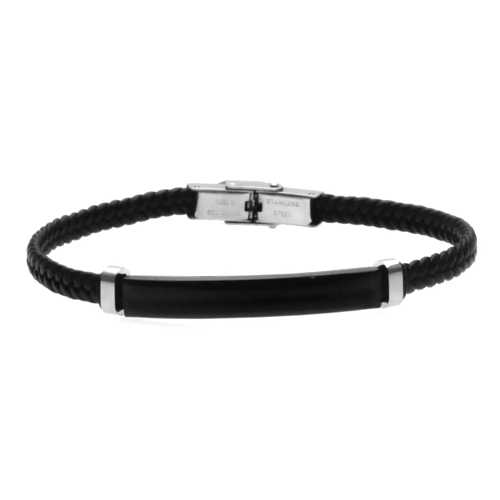bracciale pelle uomo piastra acciaio personalizzabile con incisione sul fronte cm 21 mm 6 bcc2916