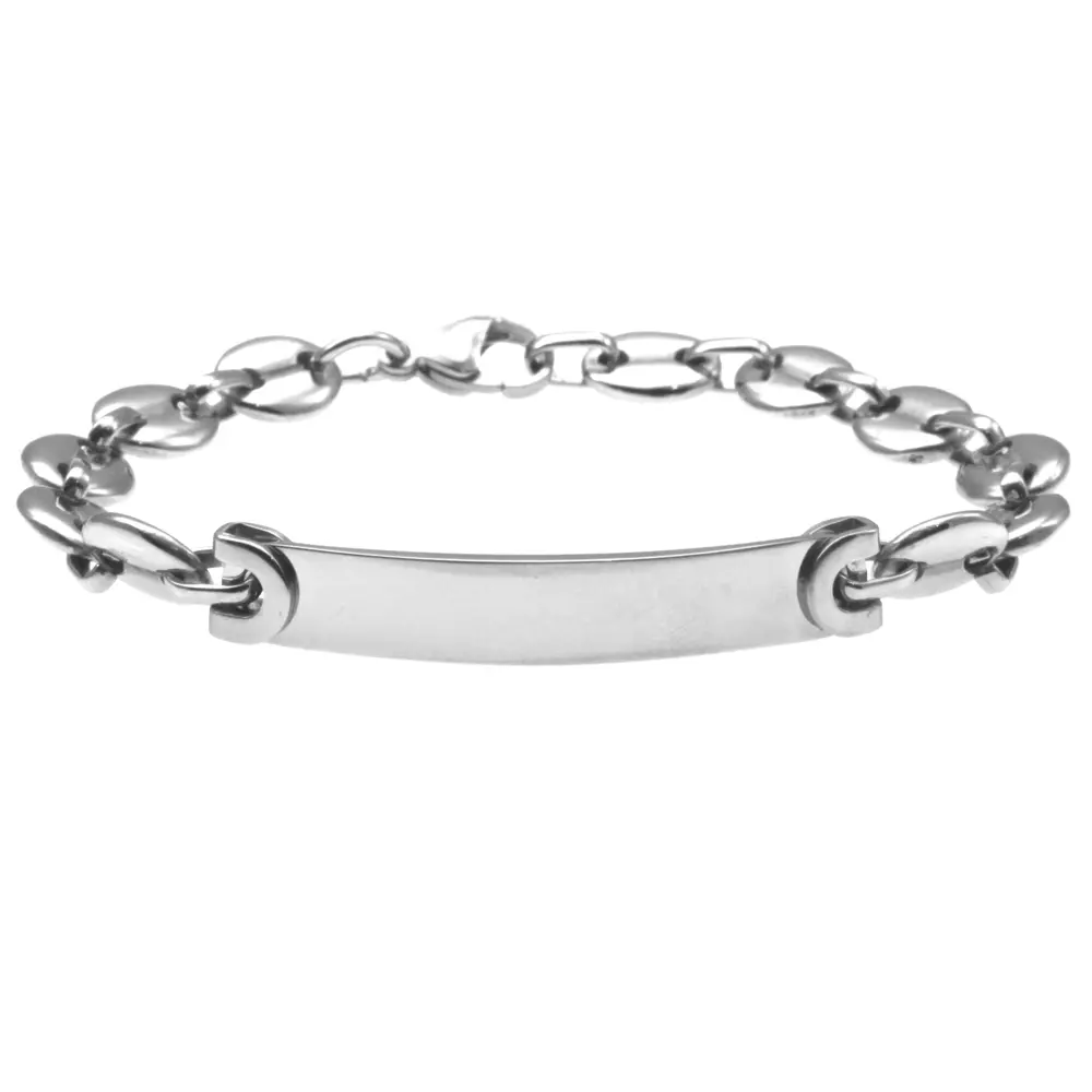 Bracciale uomo acciaio con piastra maglia marinara possibilità di personalizzazione con incisione sul fronte e sul retro lungo cm 21 largo mm 8