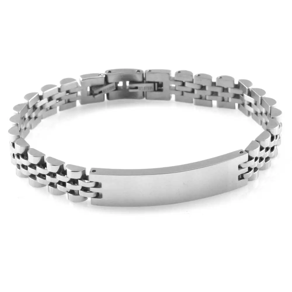 Bracciale uomo piastra acciaio maglia jubilee possibilità di personalizzazione con incisione sul fronte e sul retro lungo cm 21 largo mm 10