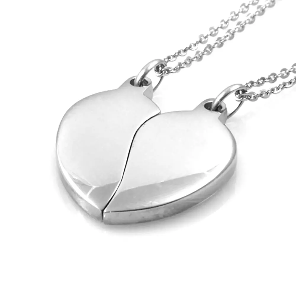 collana coppia fidanzati cuore spezzato in acciaio con calamita catenine da cm 45 a cm 50 misura intero pendente mm 28 mm 25 cll0972