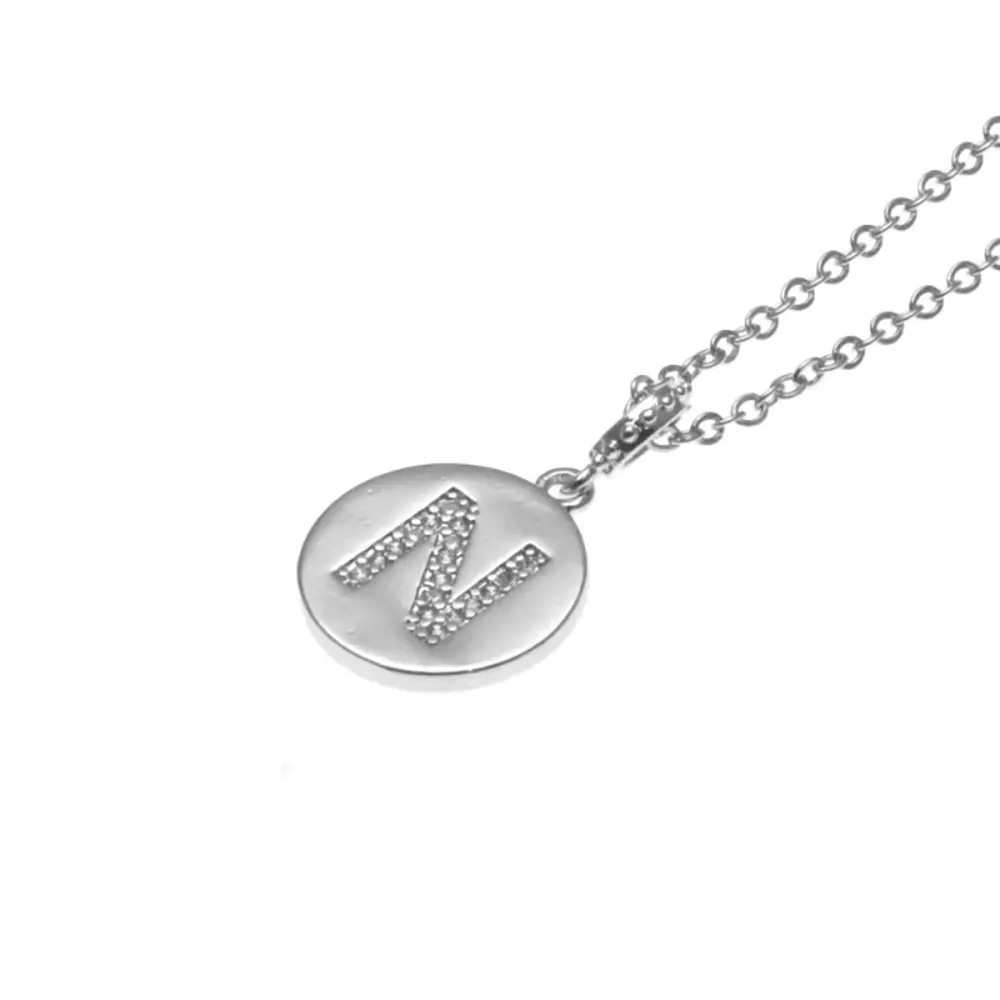 collana con iniziale n in acciaio e strass catena fino a cm 50 pendente mm 15 clia0013