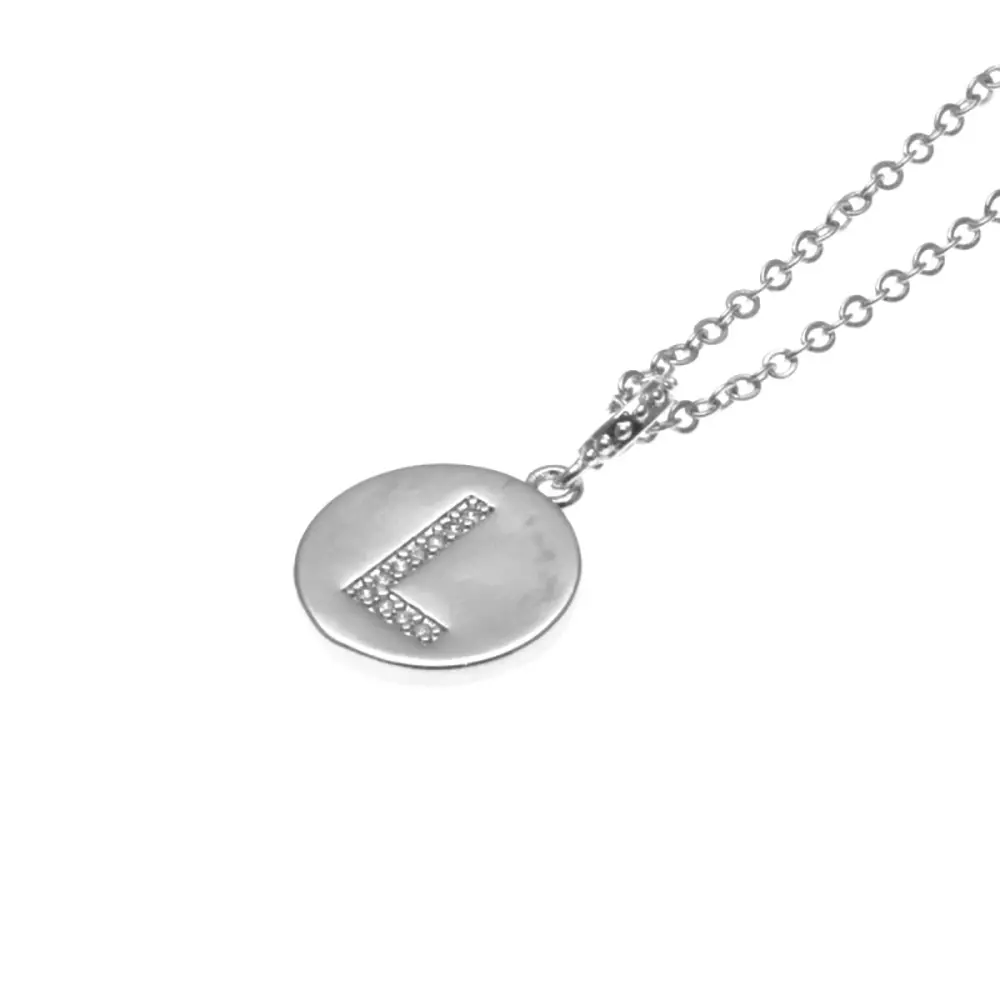 collana con iniziale l in acciaio e strass catena fino a cm 50 pendente mm 15 clia0011