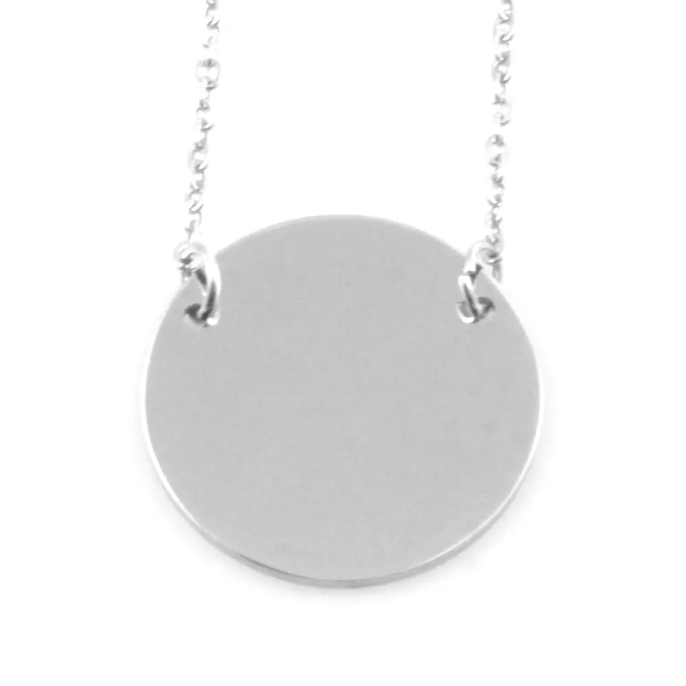 collana con ciondolo tondo in acciaio personalizzabile con incisione sul fronte e sul retro catena cm 50 pendente diametro mm 20 cll1642