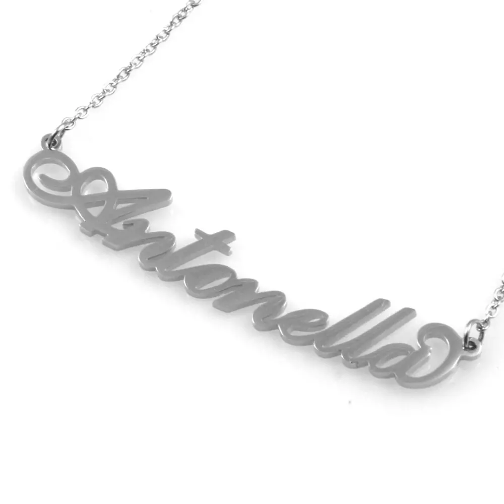 Collana con nome Antonella corsivo in acciaio inossidabile inalterabile catena fino a cm 50 cll1768