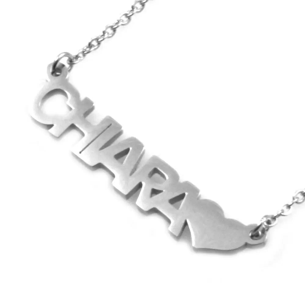 Collana con nome Chiara stampatello in acciaio inossidabile inalterabile catena fino a cm 50 cll1774s