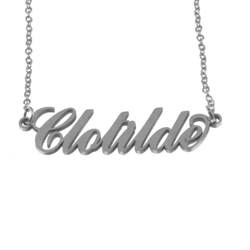 Collana con nome Clotilde corsivo in acciaio inossidabile inalterabile catena fino a cm 50 cll0564