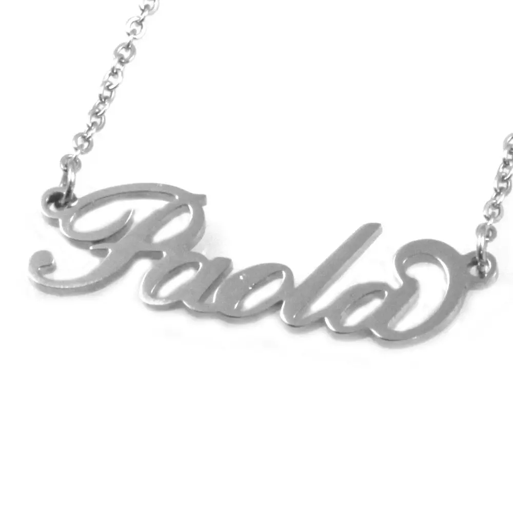 Collana con nome Paola corsivo in acciaio inossidabile inalterabile catena fino a cm 50 cll1816