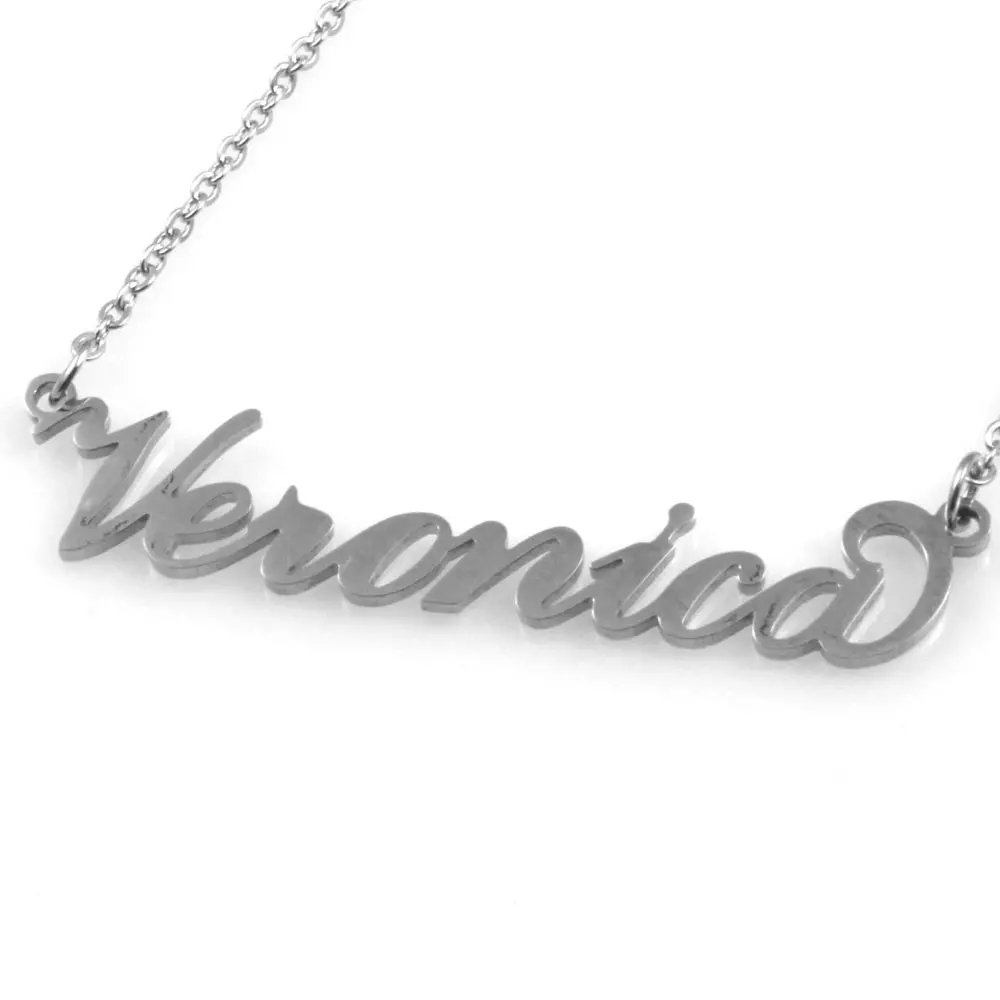 Collana con nome Veronica corsivo in acciaio inossidabile inalterabile catena fino a cm 50 cll1803