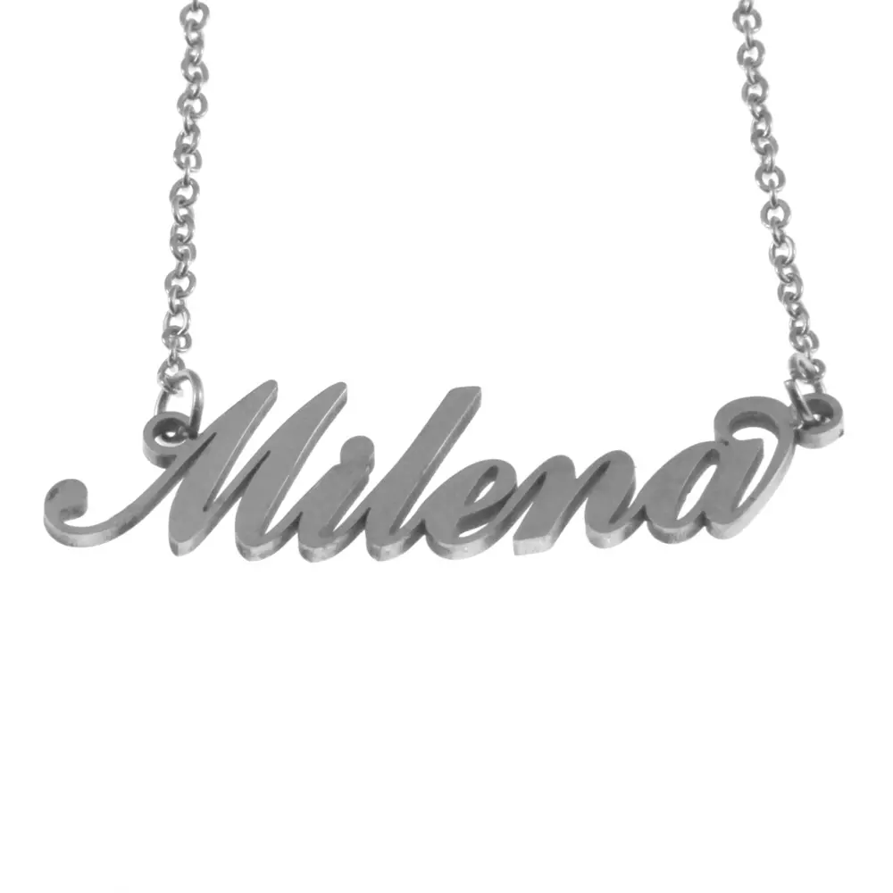 Collana con nome Milena corsivo in acciaio inossidabile inalterabile catena fino a cm 50 cll0537
