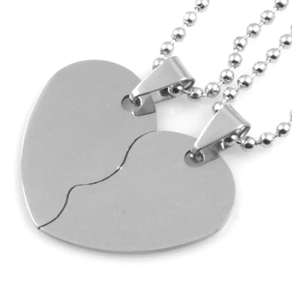 collana coppia fidanzati cuore spezzato in acciaio catenina a palline cm 50 misura intero pendente mm 38 mm 30 cll0794