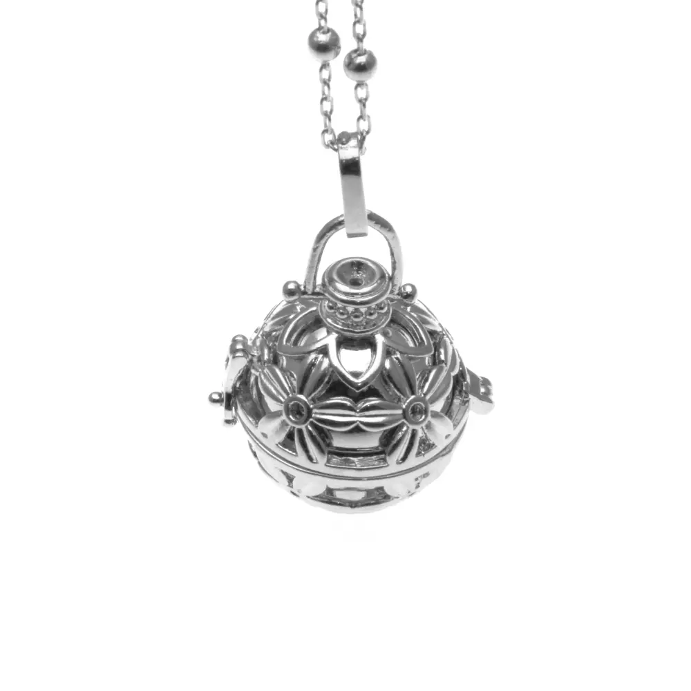 Chiama angeli collana ciondolo gravidanza con fiorellini in bronzo catena cm 90 sfera mm 23 cll1475
