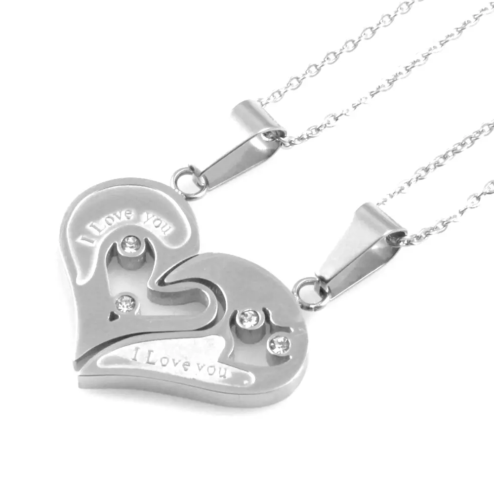 collana coppia fidanzati cuore spezzato in acciaio e scritta i love you catenine da cm 45 a cm 50 misura intero pendente mm 30 mm 25 cll1728
