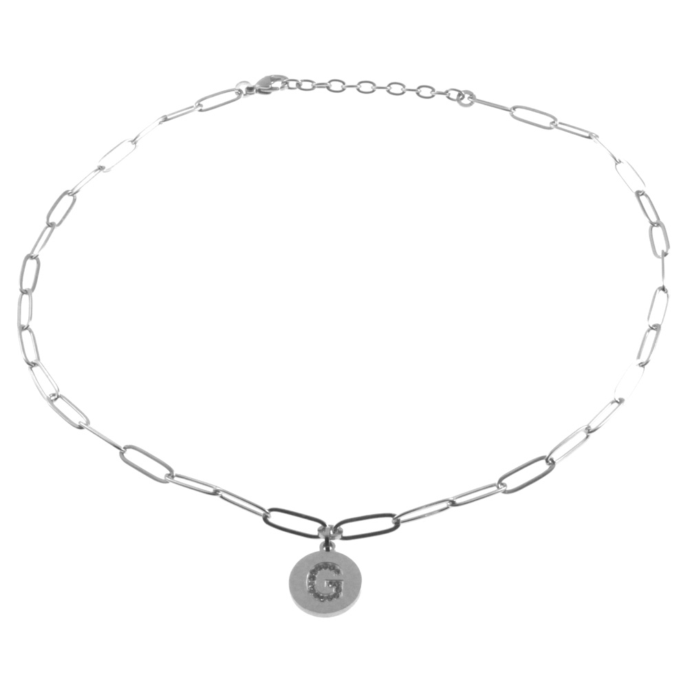 collana con lettera g inziale in acciaio e strass fino a cm 50 mm 10 cll1950