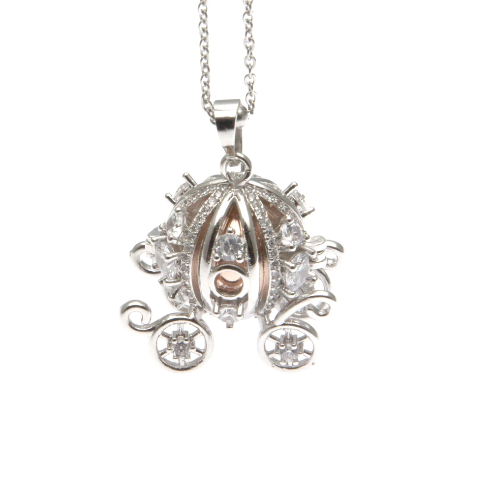 Chiama angeli collana ciondolo gravidanza carrozza di cenerentola con strass catena cm 90 mm 25 cll1006