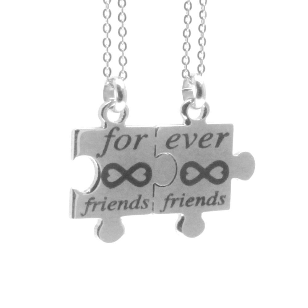 collana amiche per sempre puzzle in acciaio personalizzabile con incisione sul retro catenine fino a cm 50 ciondolo intero mm 34 cll1917
