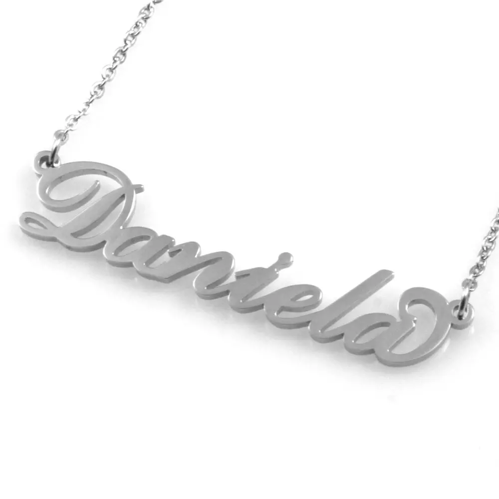 Collana con nome Daniela corsivo in acciaio inossidabile inalterabile catena fino a cm 50 cll1775