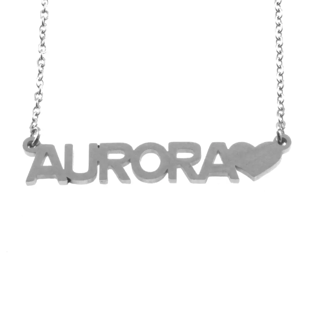 Collana con nome Aurora stampatello in acciaio inossidabile inalterabile catena fino a cm 50 cll1772s