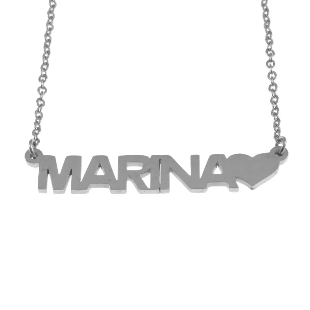 Collana con nome Marina stampatello in acciaio inossidabile inalterabile catena fino a cm 50 cll1333s